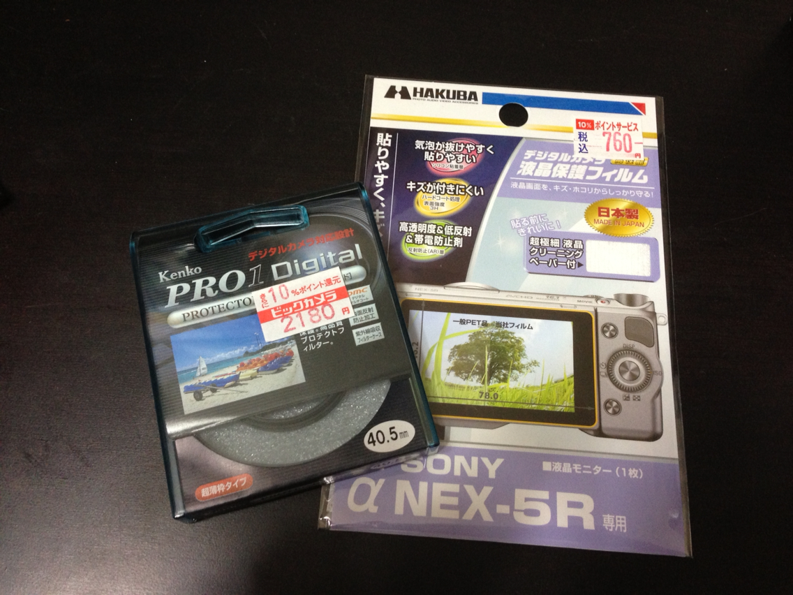 オプションで用意したのが、液晶のフィルターとレンズプロテクター。写真には無いけど、望遠レンズにも用意しました。